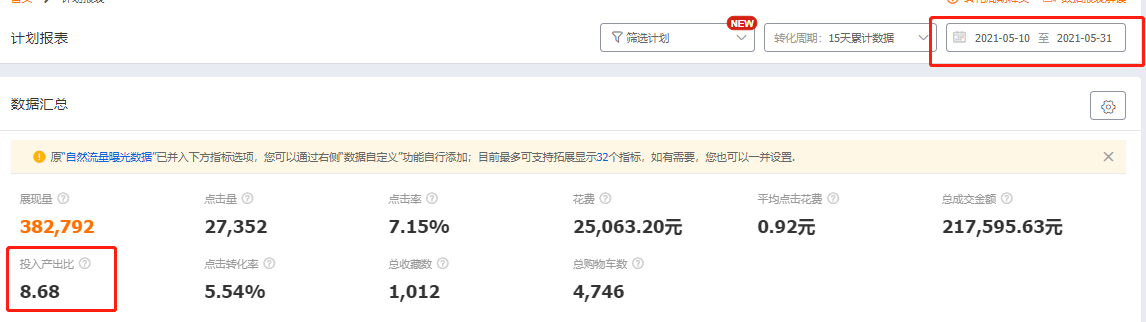 b、智能计划主要以海投计划为主,这个计划模式是后来淘宝更新的一种计划模式,测试的过程中通过数据反馈出PPC很低,且转化也很多,所以我们重点也在这个计划上加大推广,低成本多引流来达到我们的目的。
